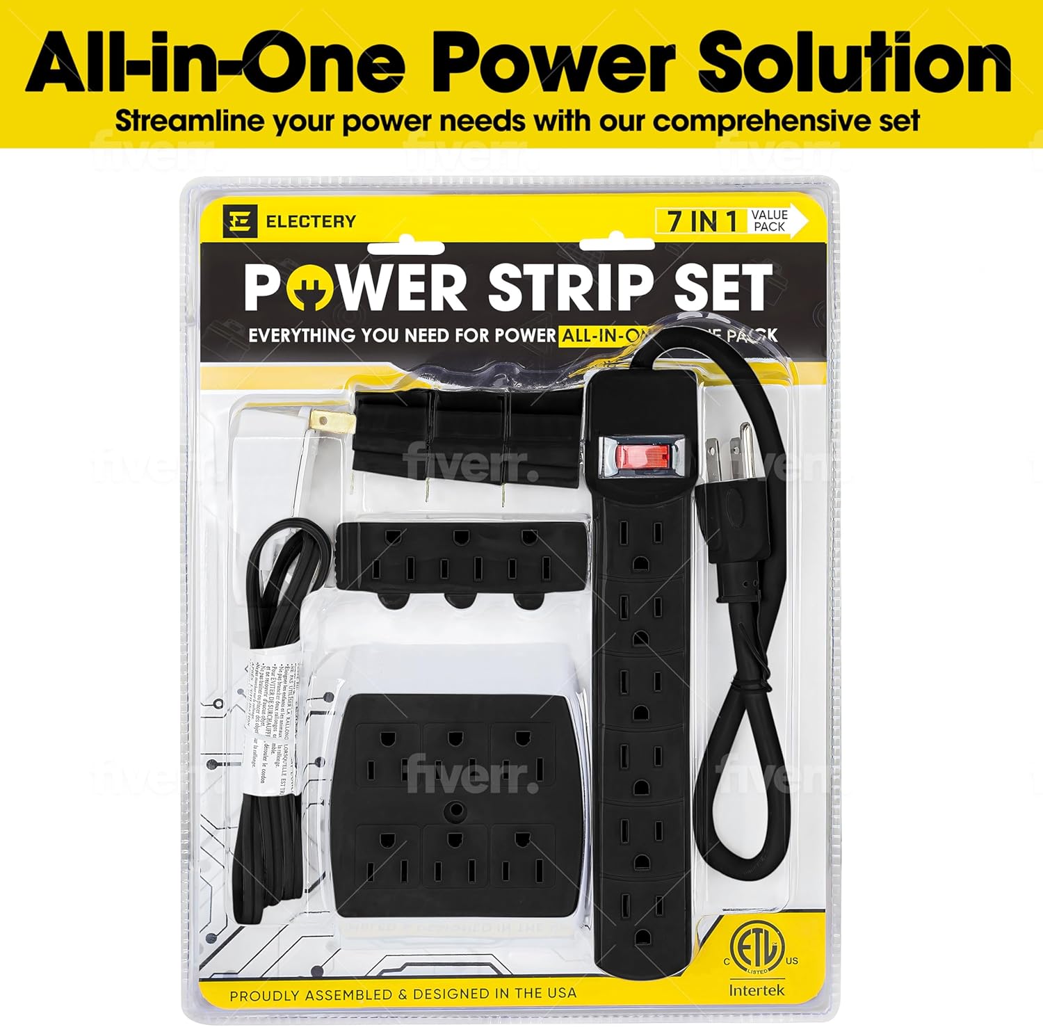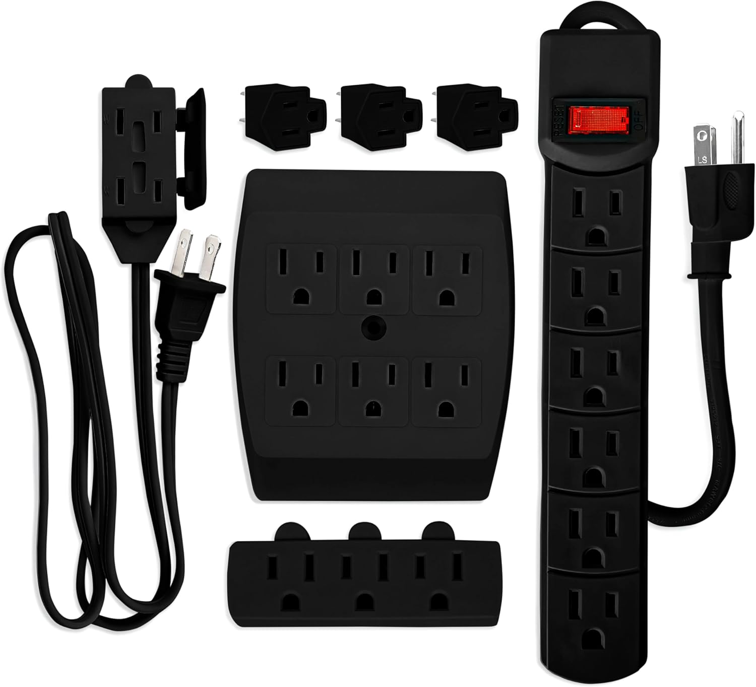 7 Piece Extension Cord Set Black