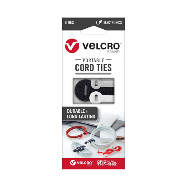 Portable Cord Ties Assorted 3 sizes. 3 colors. 6 ct. 6/bx